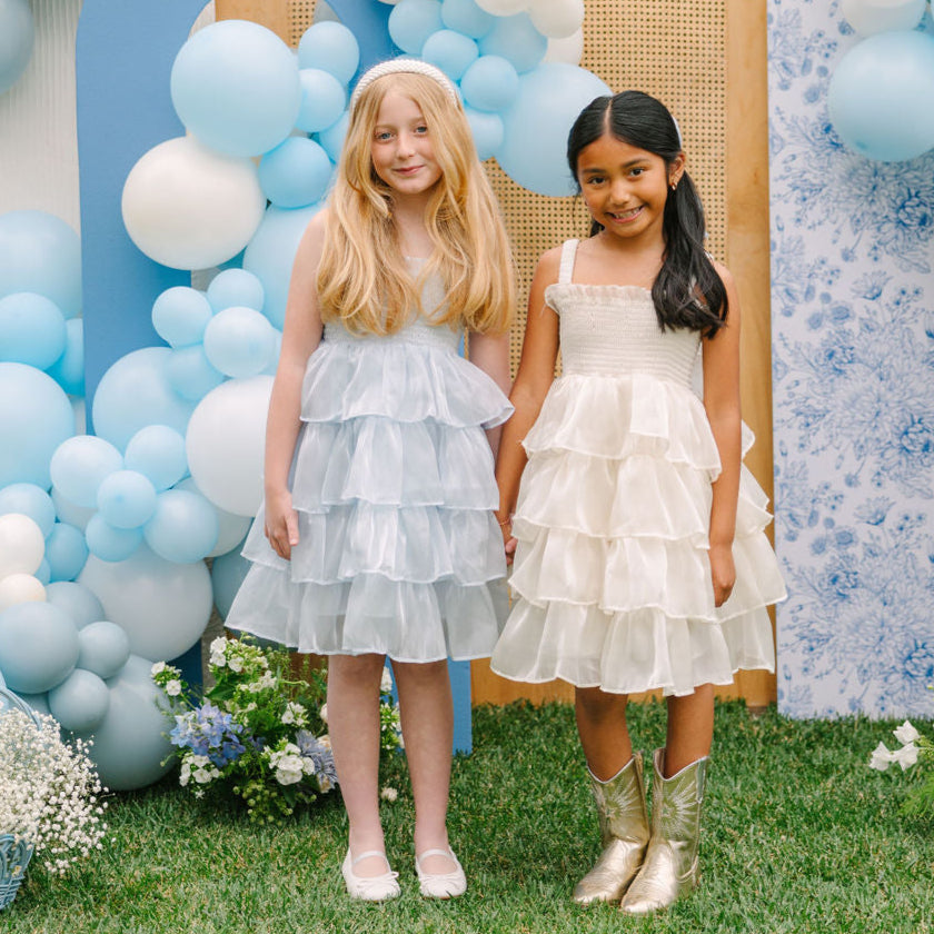 Available in soft baby blue and creamy ivory, this dress is made for enchanted garden parties, birthday wishes, and everyday fairy moments.