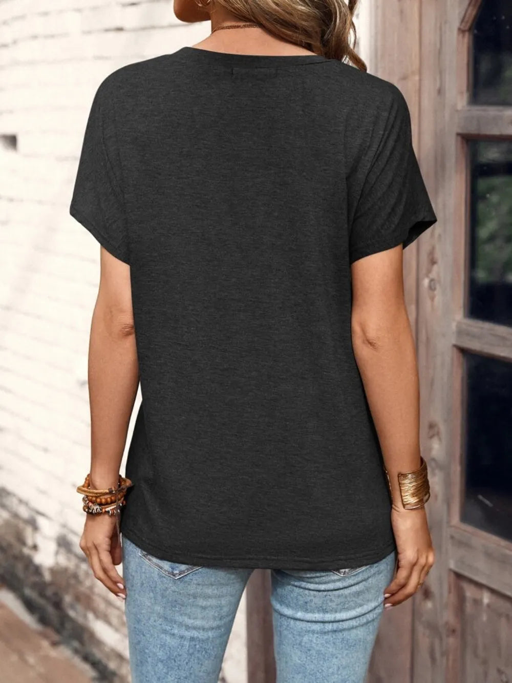 Half Button Short Sleeve Top